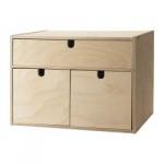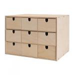 My wife is really into organizing and found these for me at IKEA a few years ago. You have to put them together yourself. They come in a little kit. I have four of these wooden storage boxes along the back of my desk. I want to get four more to stack on top of the others.