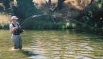 The chest pack that I use has been discontinued, but I just found a picture of it. It's pretty nice. Because of the mesh harness, I can wear it with a framepack when hiking in the mountains. That has definitely come in handy. Anyway, here's a picture of the chest pack. I figured I'd better post a picture of the fish I was fighting while I was at it. I was fishing for steelhead on the Feather this summer and caught this instead.