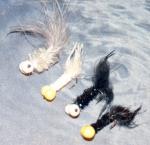 I just cut a section of medium or large Float Foam and lash it on the hook as if they were dumbell eyes. You can paint eyes on the ends if you want. You don't need to shape the foam just cut it straight. Tie a woolly bugger tail and body and you are finished.