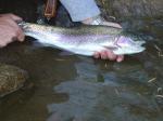 That rainbow was by no means a planter! It was a healthy 18 inches and all fins and tail were perfect. That fish was caught at the lower end of #5 on a size 20 Olive RS2. Trust me, when you get a planter at Putah, you know it's a planter, that was not. I caught some fish that day that had the top half of their tail missing and no pec fins, those are planters.