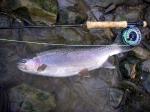 A black midge pattern that I created, you can see it barely in its mouth. It's either a #16 or 18. Don't remember, I was using bigger flies with heavier tippet since the water was a bit murky.