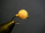 Emerger, I'm trying out my new camera with this picture. This one is an unreal egg. It's sort of like a globug, but it has a bead in the middle. When it's wet, the bead shows through the yarn. It's pretty easy to tie once you figure out how much yarn to use.
