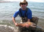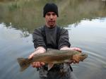 Packrat, I like that picture of the 27 inch fish, I like all these fish pics and I don't really care how big they really are. But speaking of big, I went fishing with Bono as a guide about the third time I ever went to Putah. At the end of a long day, with many nice fish, I landed a 27 inch fish (I think it says 28 in Bono's pictures on the website) and it looked exactly like yours. I mean the size, the color and that ferocious jaw were very, very similar. It was quite a fish. As one well trained in the art of exageration, but also interested in the actual facts, I have to enjoy it when someone says they caught a 27" fish. One part of me believes it, the other part thinks it is a great story whether it was 23 or 27. But I know those really big fish are there. Maybe not 34, although I think Bono caught a brown at Putah that was close to that size.