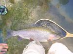 hooked this one on my fifth cast of the day, I caught one last year about the same size with the exact fly in the exact same spot in the pool. This measured a true 23 inches and was extremely thick did not fight hard at all though.