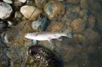 Sunday I only had a few hours to fish so I went to my favorite run between Bend and Jellys ferry. The water was a little too muddy for me and the wind was howling at 30 to 40 mph. It almost knocked me over a couple of times. Conditions were less than Ideal. I was able to dredge up 2 rainbows 15" to 16" a squaw fish and had another big one come off. All on my big Black superfloss. I love the lower sac.