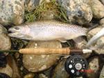 b) Work the edges and seams with the stonefly, don't get out in the flow. Hit the spill ins and buckets hard. Fish were aggresively feeding on top in the spill ins, not necesssarily rising though. I was able to sight fish to 3 I saw working small spill ins, and landed all 3.