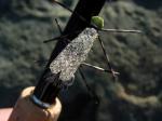 Well I hit the Yuba with Captain and Emerger on Sunday and we had a characteristically tough but fun time. Since it is already out there on the board I'll spoil the shocking ending, some Darwin nominee tried to drive his truck across the river down by the 20 bridge and got pinned against a piling in about 5 feet of rushing water! It looked very spooky while we were walking out in the darkness. Other than that there were many people enjoying themselves at the Yuba this beautiful Sunday. We ran into a few guys I fished with last week who managed 3 or 4 good fish, and there were several other fishermen out pounding the banks. The day started off pretty slow. No bugs showed in the AM or early afternoon so we stuck to Nymphing. I had just tied on a San Juan worm when Emerger yelled that he spotted a pod of fish, I went up to his vantage point and sure enough right off the bank in a shallow depression there were several large fish feeding actively. We went down and first cast my indicator went down. I set the hook into a rainbow torpedo that jumped several times and then took off making my new Abel reel scream delightfully loud. After a hell of a fight Emerger netted the fish, about a 17" bow with a buttload of energy! Shortly after I missed a nice one and landed another smallish fish in the same area. Emerger also hooked a nice one that shook him off. We started to see some PMD's and March Browns coming off and fish began rising sporadically. We also found a HUGE golden stone and I got some good pics of it. After that we hiked up to see how Captain was doing. He had a really hard take swinging his nymphs in the confluence of two channels under a big riffle, but set the hook too quickly and missed the fish. Emerger and I moved again down to the opposite side of the bank we were fishing before where we had seen a few risers. Noticing that there were some skwalas showing on the water I tied on a new fly of my own design to try out. I found a line of rising fish and drifted over the first one. On my second drift it was like a mine exploded underneath my fly. I didn't even have time for a hookset before my line went flying through my fingers, out of my guides, and into the water! If you have ever owned an Abel you might appreciate how exceptionally loud these reels are when you have a fish on, and this one was making my reel sing a song that echoed through the little canyon we were in. Once again Emerger came to the commotion and saved the day by netting the fish. A big fat 20" hog that didn't even fit in his net! After that he tried to get a take on a skwala but the fish were put down or had switched over to mayflies or something. After a while with no takes we walked back up to where Captain hooked his fish and I drifted my bug over the same lie. After a few casts a dark shadow darted out beneath my fly and took it. After a short battle I had another bow to hand that went about 17". Next cast in the same spot a really nice fish came up and sipped my fly. All I saw was his head and I swear he looked me in the eye, decided he knew better, and spit it back out, dissapearing as fast as he came. We decided to call it a day and fished our way back. On the way Emerger hooked another fish that jumped three times and then spit his hook. What a bummer! Ended the day 4 for 6, exhausted but happy! Thanks Cliff and Sean for inviting me to fish with you guys and for the help with the net/pics! If anyone is going up there planning on fishing the Skwala hatch know that it is winding down and if they appear it will only be for a short while. The fish were actively rising to them only for about 1/2 hour out of the day, but they still took an imitation casted out over likely water with no rises. Don't get discouraged if you go up early and see no bugs/risers. The activity is centered mostly around the warmest part of the day (3-5pm) so just stick it out and you should get into something. That said it looks like March browns are starting to show and Goldens are on the way. The Yuba is coming into shape boys, hold onto your hats! chuck