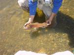 These little tribs are always fun to fish. Most have small brookies so we were surprised at the size of these cuts. I agree this little creek could not handle any pressure but there are other ones out there like it and Eric was right about the undercut banks. The only other thing I can tell is that it was above Hangmans bridge. We caught no fish on the e, Carson