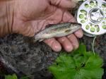 Reminds me of the smallest fish I ever caught on a fly which was surprisingly a Dolly Varden in Alaska. We stopped at a lake on Kodiak where we thought we had seen fish rising and sure enough they were there, but the tiniest fish I have ever encountered.
