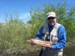 Rock Creek is 50 miles long, so there are many different settings for this river. Fishing turned out to be fantastic. Both floating and wading side channels(the first couple of days), and then the main river later in the week. Our first day, the two boats we floated in landed over 80 fish between two anglers in each boat. Half the fish were under 11" and the other half were generally between 12"-17". Rock Creek fished very well every day. The Blackfoot started out with 3 1/2 hours of nothing and then turned on big time after lunch. The day we arrived, Rock Creek was at 3000 CFS due to runoff. The day we left, it was 1550 CFS. The fishing just got better every day. Rock Creek is loaded with Browns and Westslope Cothtroats. The Rainbow population is just recovering from Whirling disease, and there are a few Bull trout in the river as well.