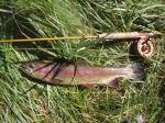 Conefish and i along with a few other relatives fish these fisheries regularly for a week while staying in Black Butte Ranch. The metolius is a spring fed, fly fishing only, catch and release river. We fished it right during the golden stone hatch and caught many. Conefish landed a 19 1/2 inch rainbow on a stonefly dry along with many other nice fish. I caught a 18 inch rainbow and a 18 1/2 inch whitefish. Although the stones were coming off, i decided to try for the bull trout in the deep holes that get up to twenty pounds! I tied on a big bunny leech and hooked one within a few casts... we tussled for a few long seconds and the hook popped out and snagged on a log in the water. I didn't know how big he was but he had to be around 30 inches!
