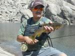 Headed out for a 1hr and 30min drive up the dinkey creek and Wishon Res. First stop was at dinkey creek, it was just crowded but there was about 20 stock bow in one large pool.. the fish show no intres in eating there plus it was crowded. I figure that wishon would be better, so i went up to wishon. I spotted a brown feeding on top, so i tied on a size 18 Adams and made a switch cast becuse i had no room for a back cast. I made two small strips and saw the fish moved towards the fly. I stop striping the fly and then the brown slurp the adams right in, my next move was to set the hook. It gave a good fight.