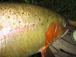 Most of the big fish actually remain pretty dark with red coloring all summer long. Very few spots below the lateral line.