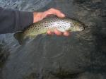 The big T was fishing really really good too. Must of got 40 fish to hand. with some crazy hard fighting fish to boot. even the smaller fish would give you trouble they are like lighting in a river. We were mostly nymphing but had plenty of action on the buggers as well. found a nice population of decent sized browns while slapping a bugger around one evening. Pics: some lil truckee fish bruce trying to keep em out of the trees a little guy with a mouthfull some sweet lil brownies
