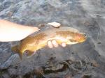 The big T was fishing really really good too. Must of got 40 fish to hand. with some crazy hard fighting fish to boot. even the smaller fish would give you trouble they are like lighting in a river. We were mostly nymphing but had plenty of action on the buggers as well. found a nice population of decent sized browns while slapping a bugger around one evening. Pics: some lil truckee fish bruce trying to keep em out of the trees a little guy with a mouthfull some sweet lil brownies