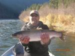 Hey guys and gals, my buddy and I fished the Klamath last weekend. It was slow. We drifted the upper section from Irongate damn down to Klamathon bridge on friday and got 2 half pounders. Saturday we decided to hit new water. We figured it couldn't be much worse. So we drifted the Cade Mt. drift from China Point to Indian Creek(right in Happy Camp). We each caught a couple small ones then aroud noon I hooked into a pig. My buddy had to row through a rocky run while I fought this steelie but we were able to net this wild fatty. We caught about 10 more smaller fish the rest of the day. Sunday we fished the upper section again and only got this 18" halfpounder. We need rain, which it looks like we are going to get this weekend.