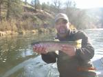 Hey guys and gals, my buddy and I fished the Klamath last weekend. It was slow. We drifted the upper section from Irongate damn down to Klamathon bridge on friday and got 2 half pounders. Saturday we decided to hit new water. We figured it couldn't be much worse. So we drifted the Cade Mt. drift from China Point to Indian Creek(right in Happy Camp). We each caught a couple small ones then aroud noon I hooked into a pig. My buddy had to row through a rocky run while I fought this steelie but we were able to net this wild fatty. We caught about 10 more smaller fish the rest of the day. Sunday we fished the upper section again and only got this 18" halfpounder. We need rain, which it looks like we are going to get this weekend.