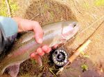 I was out yesterday and it was slow until 1:30 pm. Hooked up 3 nice fish. Landed one, got one very close to the net till a head shake at the last minute bought it a pass, and the third one was lost not long after I got a bite. Had a caddis puppah and a WD 40 as a dropper. Attached a photo of the one landed.