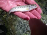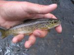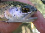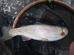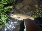 Alistair, for your benefit, I have posted a new leader for smallest fish of the year. Besides how small he is, notice: a) he's caught on a dry b) he's hooked right through the lip. I told the guys that I was going to fish this tiny spill-in in search of a fish smaller than yours. Sure enough, first cast produced a winner. We all laughed. You've got some work to do now.