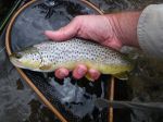We then fished the Lower Truckee just above Farad. What a pretty stretch of river. We head to jump under a railway overpass to dodge rain and lightning for about a half hour. The fishing required work, but nice fish were to be had. A couple of brownies are posted below.