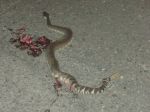 OH - forgot... at the end of the evening, on the way out of the parking lot, Bono accidentally ran over an adult rattler. It was trying to get away after being smashed by his big tires, but it couldn't really get going after having the lower half of it's body crushed (and a good portion of it's guts slung out on the road).