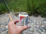 Got into a number of large and medium sized fish all during the day. Lots of hard work paid off. I decided to pack pretty light, knowing that it was going to hit 100 degrees, and living inside the bay makes me think 80 degrees is a hot day. I went through my Gatorade and Power Bars much quicker than I though I would. As I'm working up the river bank, and have only 1/2 of a Gatorade left, I come upon a full Budweiser wedged between the rocks in the river. That nice cold beer hit the spot, even if it was Budweiser. What is it they say about one man's loss being another man's gain???? Couldn't have been more true here.