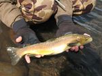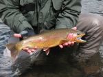 Fished Pyramid Lake this weekend, fishing was slower that reported. 10 fish all day between 2 of us, 9 cuts, 1 qui-wi. The last fish of the day was a monster though and my new personal best on a fly rod, 29 inch, 9 pounds, measured and weighed not a guess. Also fished a river on the way home and it was really good with dry flies all day. First time for me fishing in a snow storm!
