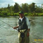 My background is that I live in Antioch and used to bass fish on the Delta about 4 days/ week with a buddy who was a semi- pro and had a boat. I got the fever and spent loads of $$ one summer (6 rods, reels, and a gobs of takle) and didn't think there was anything more fun. Then I started salmon and steelhead fishing on the Trinity and Sacramento. Uh oh... and I thought bass gear was expensive. I have been fly fishing for about 7 years and still consider myself a 'rookie' cause I really wish to learn more about the waters I fish and technique. I am a catch and release angler though I will occaisionally take a salmon (I don't eat it but enjoy inviting friends over that do). To date I have still not boated a sizeable steelhead on the Trinity. Hooked a couple of 10 pounders- real nice fish, but lost them before I could take that picture and release them back into the wild. I have fished in Alaska 3 times and there is absolutely nothing that compares to hooking, fighting, and releasing a 28" trout or a 12 pound silver- still looking to hook the 30 incher.