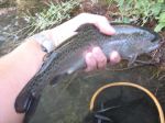 Planter trout have a lot more spots below the lateral line.  Here is an example of some smaller trout.  I fish the creek year around and can tell you there are not that many big trout that have a lot of spots below the lateral line.  The big wild trout have a distinct difference from the planters.  If you fish the creek year around you will know what I am talking about.  If you are a bait fisherman the best place to fish is the upper east carson the County plants huge fish.  I have seen at least 200 planters in one little hole!!!  They plant all of the areas around Markleeville.