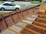 So here is the skinny. As of this evening, it is completely back together. Front lean bar in, side skirts on, 2 more clear varnish coats on the exterior. Only thing that is not making it 100% done is the back lean bar. Right now there are 2 coats of stain, and I am thinking that will match perfectly to the existing wood on the boat. So tomorrow will be 2 coats of clear satin varnish, then put the leg braces on the lean bar, then put it on the boat.........