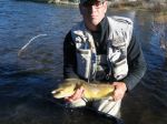 Three or four years ago I landed a 23-inch brown from Putah. Unfortunately, it was foul-hooked. Naturally, I was disappointed that it wasn't mouth-hooked. However, my indicator did go down and I did get the enjoyment of fighting and landing a truly beautiful fish. Believe me, it put a huge strain on my 5X tippet. I'm guessing it was in the 5 lb. range.