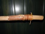 Mine I leave full length and drill a hole through the end to tie on some rope. I add a little black tape as the rope I use (mule tape) tends to loosen up over time. I tried running a hex head screw in the bottom at one time for a make shift cleat but it didn't work out so well. After you've used the staff a few trips, the bottom gets a little beat up and "grips" rocks rather well.