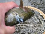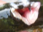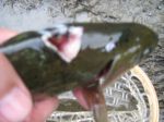 Here are some photos of a fish caught today.  It appears the fish was attacked by a cormorant or merganser.  The fish actually had tons of energy even though it had a huge gash about one inch deep.