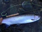 Started out in my old faithful spot around J.C. and landed a sweet wild steelhead in the first 2 hours. Stoked! THis is an indicator hole and I really wanted to spend more time swinging and even maybe skating flies this trip so I forced myself to leave and move on to better swinging water,so downstream I go. Get to a spot that looks great, swung thru down the run nothing. Grabbed the indicator rod to hit a couple juicy looking spots in the run and sure enough Fish on!! Frickin indicators are lethal. This happened alot in the course of both trips.