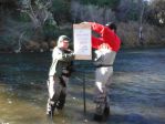 The signed areas are very obvious-no excuses about not knowing there are spawning fish. PCT and DFG will be monitoring these areas for vandalism to the signs and fishing activity. The signs, posts and other accessories are government property. We would appreciate posts to this site if you observe damage. As always, if you come across people fishing, kindly/gently remind them that these are official restoration sites being studied by DFG as well as the dangers to the health of the fish. During the past two spawning seasons over 330 different instances of fishing the redds were captured by photography; over 30 fishermen were captured standing in the redds.