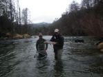 I got a chance to go up with a couple of customers and hit the winter run on the Trinity this past Thursday and then we followed up on Friday with a day on the Lower Sac. The Trinity was gin clear and called for long drifts away from the boat. There was no other traffic that we saw on the river between 2 boats, one on a high drift, one a low drift. We had to really work and scratch, but landed 13 steelies between the 4 of us, so we were pretty happy.