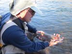 It was comical watching my friend trying to net the 19" for me. He had one of these fancy rubber nets that really don't hold big fish very well. He netted it about 4 times and the fish kept flopping out. Finally I yelled with a laugh, "net the f...kng fish already. You're killing me!" and almost fell in the water Was really surprised that the #20 hook stayed put during that circus.