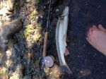 I fished access 5 the other day and ran into a pod of fish.  My heart skipped a beat in anticipation due to their number and size.  I had never before seen such a concentrated group of large fish.  There must have been 8+ fish.  They were holdin IN a riffle - very unusual for trout in my experience.  Of course I had to cast to them - they didn't look like spawning trout to me...  After ~ 10 casts, I set the hook one of the larger fish.  He fought pretty well for ~ 2 minutes and then I brought him to net.  A pikeminnow!  Biggest one I have every caught. 20+ inches. Now I know what I've seen down in Lake Solano while kayaking.  I've seen some big ones shooting by.  Their dark lateral stripe gives them away...