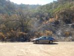 Hey everyone. I went to the creek and just as I suspected fairley heavy burn down to the waters edge in places but as you would suspect pretty spoty with some places burned to the dirt right next to places only slightly touched. I checked with state fire and was told the road was open but when I got to pleasure cove resort CHP had it closed again but get this I must have an angel on my shoulder the CHP sargeant offered me and Rusty yup Me and my dog Rusty a ride down to access 3 and back to assess the damage maybe its Rusty he is a real cutie and the sergeant was a pretty cute lady. You should have seen us Rusty and me riding shotgun in the CHP cruser. Anyway I need to get back up to the creek to check access 4 and 5 Ill bet its toast. I think im back on the creek soon. Its this winter im worried about , with this drought it burned pretty hot and much of the hills are bare soil and steep so when the rains comes soil erosion follows .