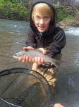 Went out today with my son to check out the creek. It's still very stained with limited visibility. We only fished a couple of hours. One to hand caught by my son. It was a great day.