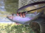 Picked up four yesterday upstream. All in the 15-16 class. Fat and wide; nice runs and multiple jumps. Good mayfly hatch for a couple hours starting about1pm. WD40 grey flashback and S&M is what they ate for me.